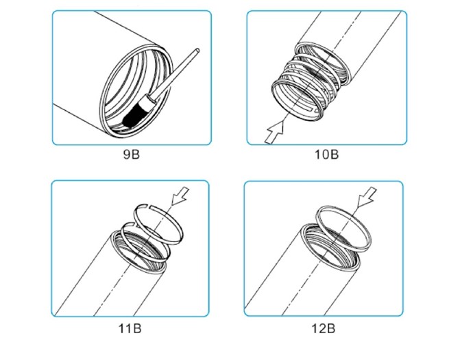 裝好一個缸筒后,將缸筒繼續(xù)向前推并將卡簧裝入上一節(jié)缸筒內(nèi)壁上對應(yīng)的卡簧